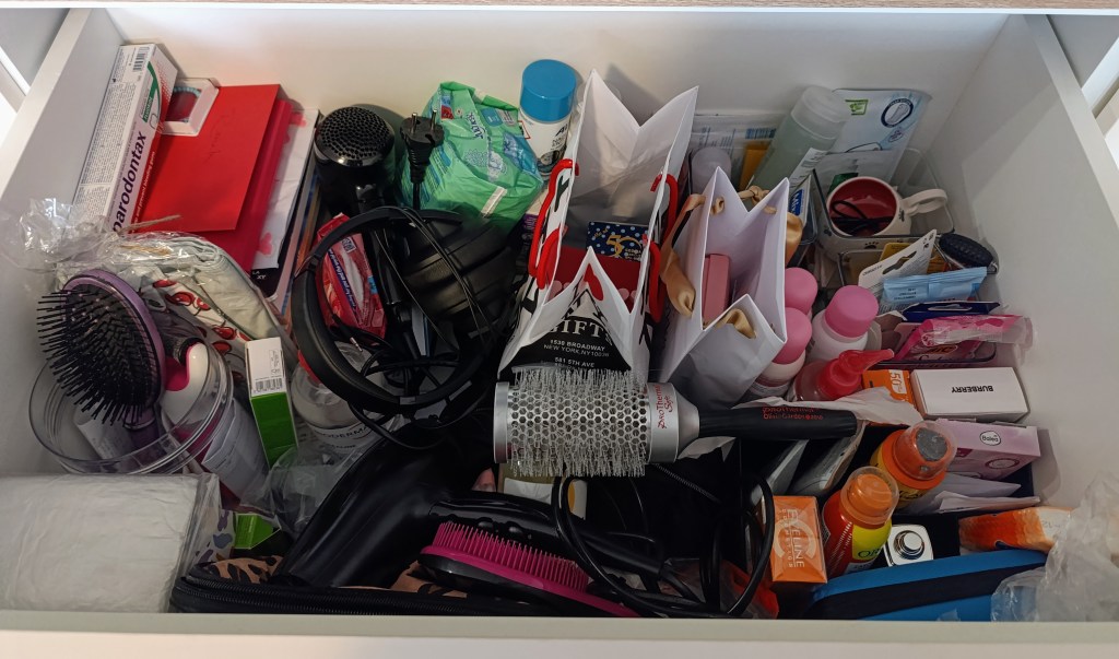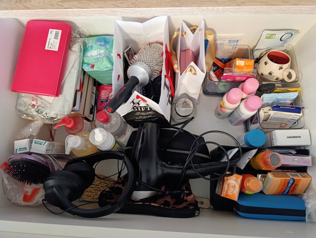 I decided to start by clearing out the largest drawer of my possessions in the apartment. It holds whatever I think is valuable. This is the beforepicture.